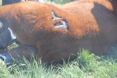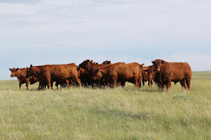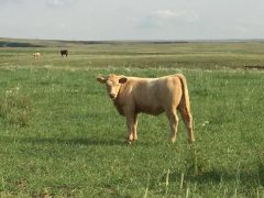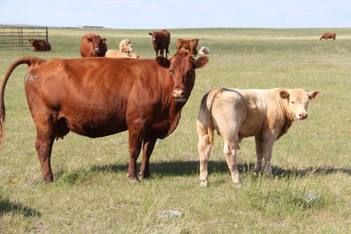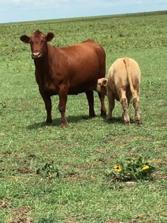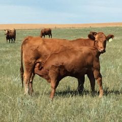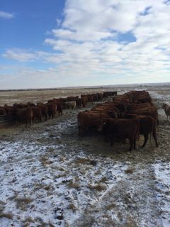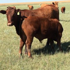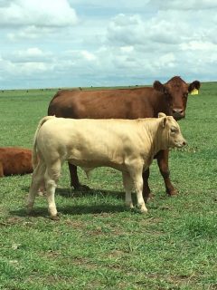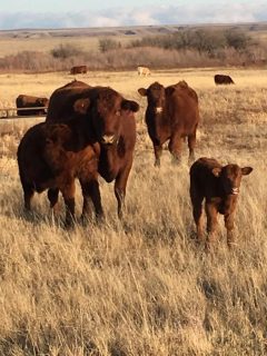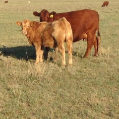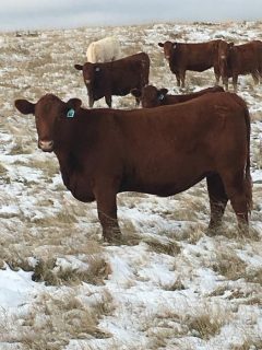 Our red cow herd is matched with Charolais bulls which we travel great distances to find. Our Charolais bulls have depth and low birth weight with a 205 day of 800lb or more.